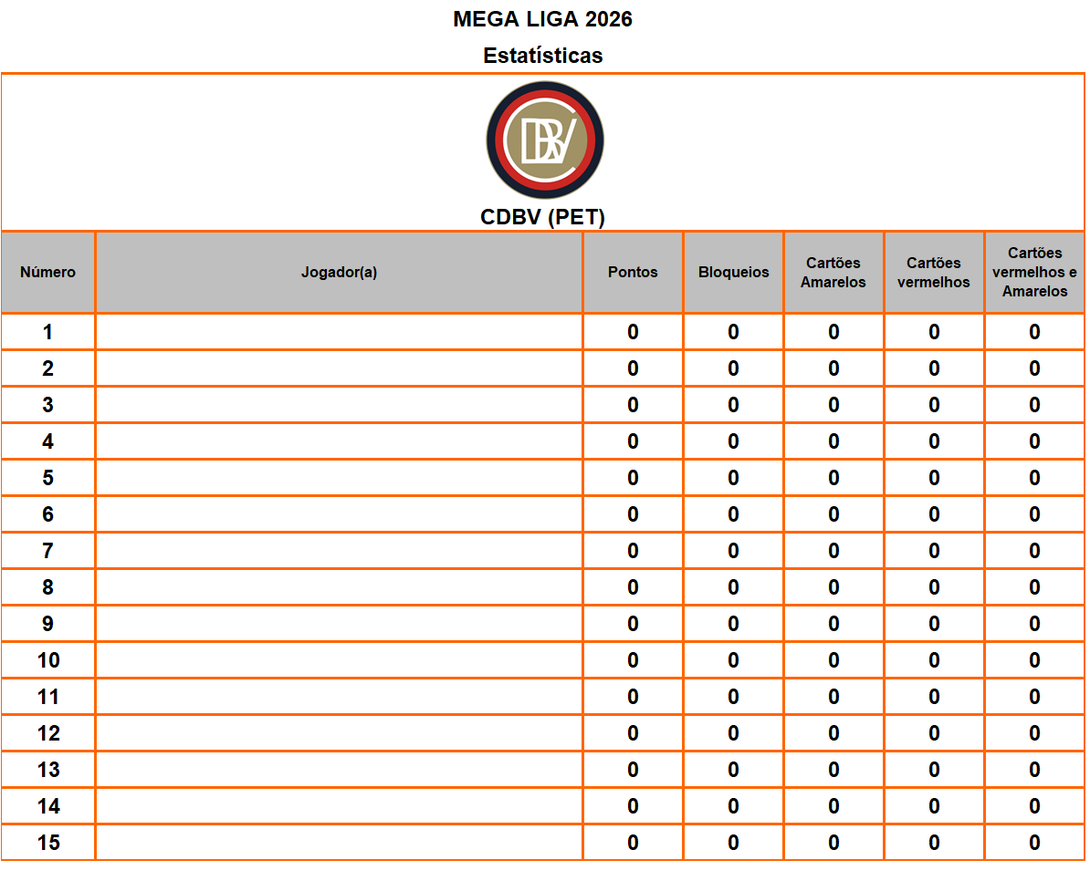 Observação: O critério para creditar ponto ao jogador(a) é quando ele (a) coloca a bola no chão dentro da quadra, ou quando ataca e a bola toca uma vez no adversário e vai para fora. Já no bloqueio, precisa bloquear e marcar o ponto de bloqueio. Qualquer outro ponto será considerado erro do adversário e não será creditado.