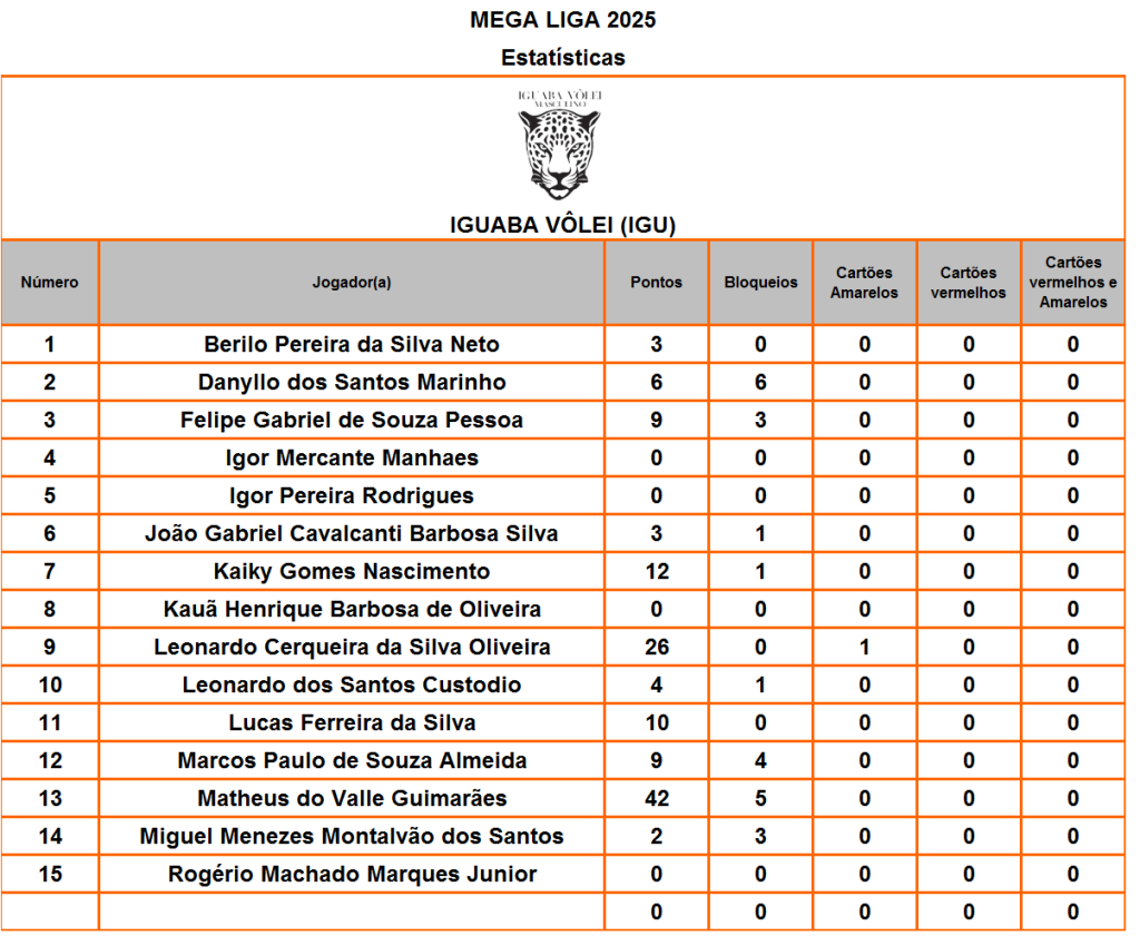 ESTATÍSTICAS – IGUABA VÔLEI (MAS)